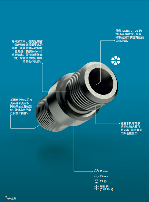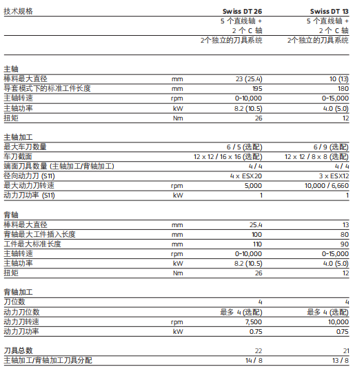 Swiss DT 系列瑞士型車床專業(yè)設(shè)計(jì)滿足典型長 短車削工件的各種要求。該系列機(jī)床簡單易 用,加工直徑達(dá) 13 和 25.4 mm,可顯著提高生 產(chǎn)效率。Swiss DT 系列采用先進(jìn)的技術(shù)和高效的五軸運(yùn)動(dòng)結(jié)構(gòu),是所有車削和銑削加工的理想之選。