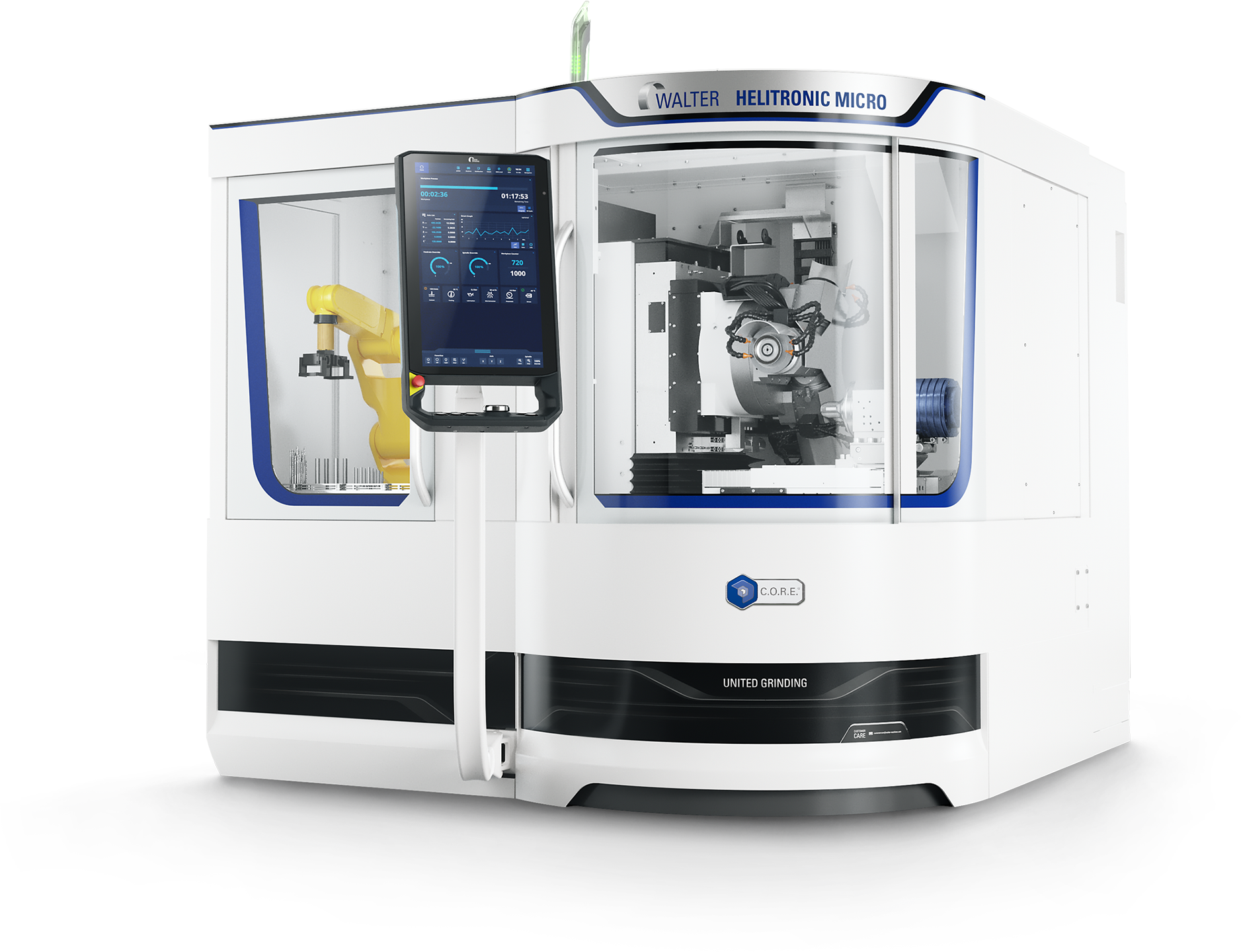 6軸數(shù)控機(jī)床針對(duì)加工微小刀具并配置有特殊設(shè)計(jì)的混凝土床身。所有軸均為直驅(qū)以實(shí)現(xiàn)高生產(chǎn)率和高精度。機(jī)器人裝載機(jī)系統(tǒng)。